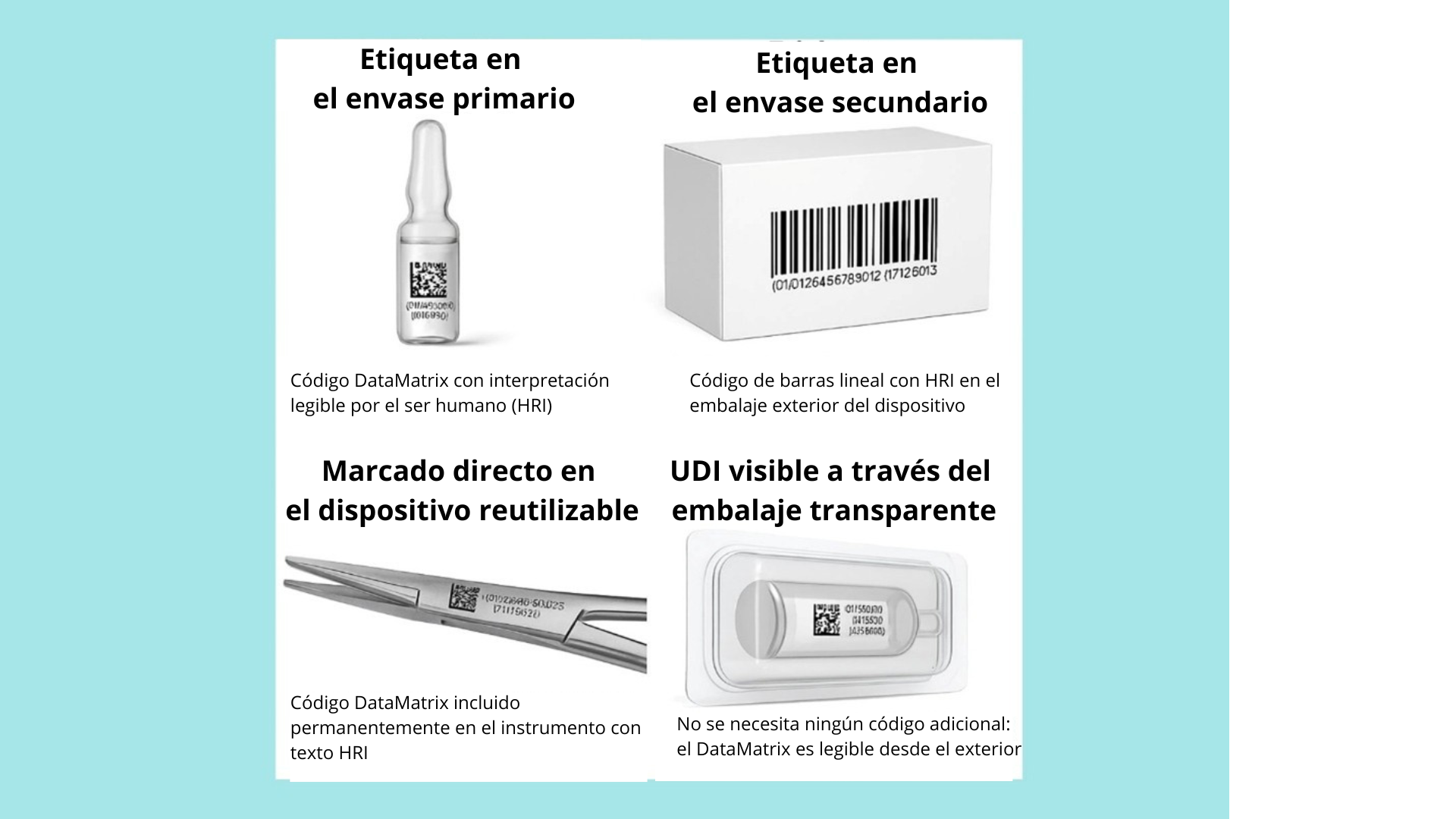 - Transparencia del envase: si el UDI ya es claramente legible o escaneable a través del envase, no hay necesidad de un soporte UDI adicional en el envase.