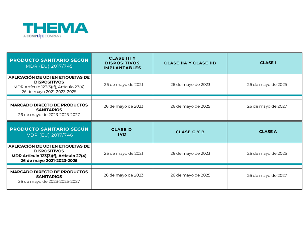 - Para la clase III y los dispositivos implantables: el plazo finalizó el 26 de mayo de 2023.